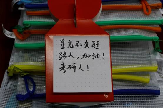 考研“福袋”内包含有整套考研文具,工业工程1702班姚爽表示:“这份温暖与感动让我铭记于心,我将调整好心态,争取以优异的成绩来回报学院的爱心助研。”