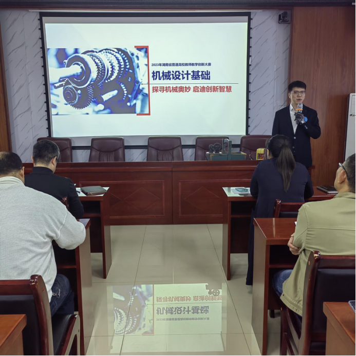 为深入贯彻落实党的二十大精神,全面落实立德树人根本任务,落实习近平总书记强调的“守好一段渠、种好责任田,使各类课程与思政课同向同行、形成协同效应”,4月11日下午,冰球突破豪华版官方网站在机械楼312会议室组织了一场课程思政示范课,学院全体教职工参加。本次示范课主讲老师是我院在2023年湖南省高校教师教学创新大赛一等奖获得者向锋。本次活动也是冰球突破豪华版官方网站教工第一党支部“双带头人”书记工作室揭牌后的又一次关于教师教学竞赛的活动。